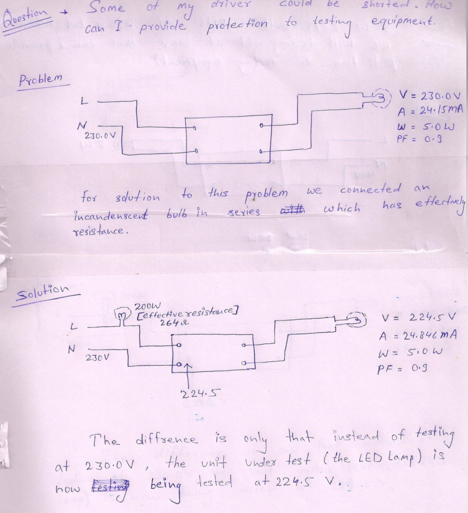 example of short circuit protection for 5 watt led bulb connected to 230 voltage.